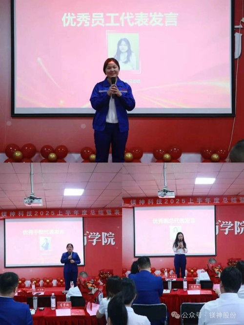 他們在平凡的崗位上書寫不凡,是匠心筑夢的踐行者、是協同作戰的排頭兵,更是全體鎂神人的精神標桿。主持人宣讀2025年上半年度優秀員工、優秀干部名單,劉江花、馬銀青等獲獎者依次上臺。