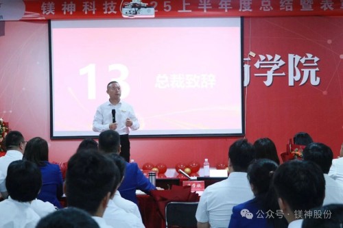 大會在全體鎂神人“好!很好!非常好!鎂神更好!”的響亮應答中開啟,隨后全體起立宣誓,共同唱響《鎂神司歌》。上半年的成績來之不易,離不開領導的正確引領,首先由總裁孫文先生為大家作2025年上半年度工作總結。孫總全面復盤了上半年公司的經營成果,既肯定了全體員工在業績增長、產品創新等方面取得的優異成績,也精準指出了工作中存在的不足與待改進的方向。“一群人、一條心、一件事、一輩子,干好干到極致”,孫總將目標與信念融入話語,為全體鎂神人清晰勾勒出下半年的發展路徑。臺下掌聲雷動,有如此清晰的戰略指引,我們定能行穩致遠。